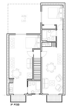 2 monoambientes amplios y 2 departamentos de 2ambientes. En planta baja cada departamento posee patio.