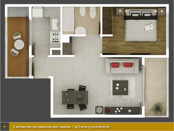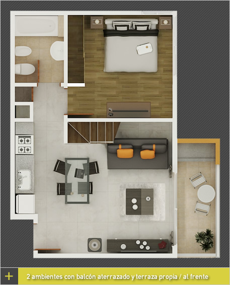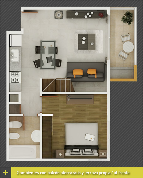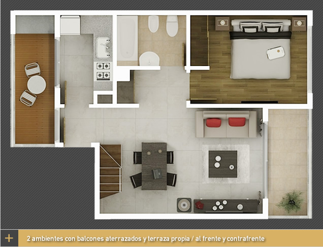 La última planta cuenta con un sector de terraza común y terrazas propias de los